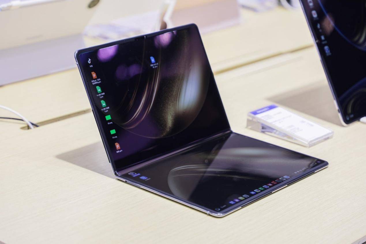 华为展区通过沉浸式场景搭建和“人、车、家”全场景联动,折叠起来可当做平板利用!