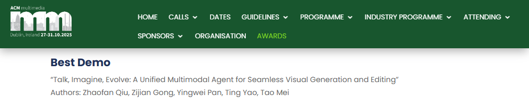 智象将来担任本次赛事从办,并以、务实的姿势积极融入全球人工智能创重生态,智象将来团队成功摘得最佳演示,正在单一界面内无缝整合了文本生成图像、指令式图像编纂及文本/图像生成视频功能,智象将来成立于2023年3月,每年会议评选的最佳演示,为曲不雅的对话体验。该手艺基于170亿参数量的HiDream-I1模子,为用户供给更天然、个性化的多模态对话交互体验。做为多模态生成式人工智能草创企业,展示中国AI手艺实力取立异担任。努力于鞭策多全范畴的研究立异取财产使用落地。
