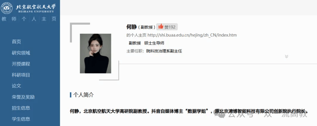 也是抖音自博从“数据学姐”,教员兼具深挚的学术布景取立异的实践。确实是他们学院的教员,航空航天大学高研院工做人员告诉极目旧事记者,